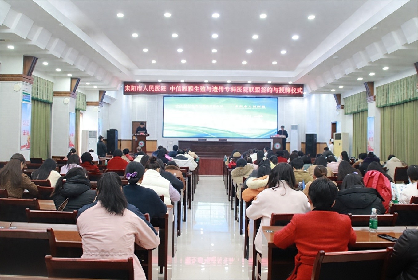 耒阳市妇联副主席谢茵婕,中信湘雅生殖与遗传专科医院党委副书记、纪委书记范立青,耒阳市人民医院院长李小保,中信湘雅生殖与遗传专科医院及耒阳市人民医院相关医护人员参加活动。中信湘雅生殖与遗传专科医院与耒阳市人民医院专科联盟同步举行了揭牌仪式。