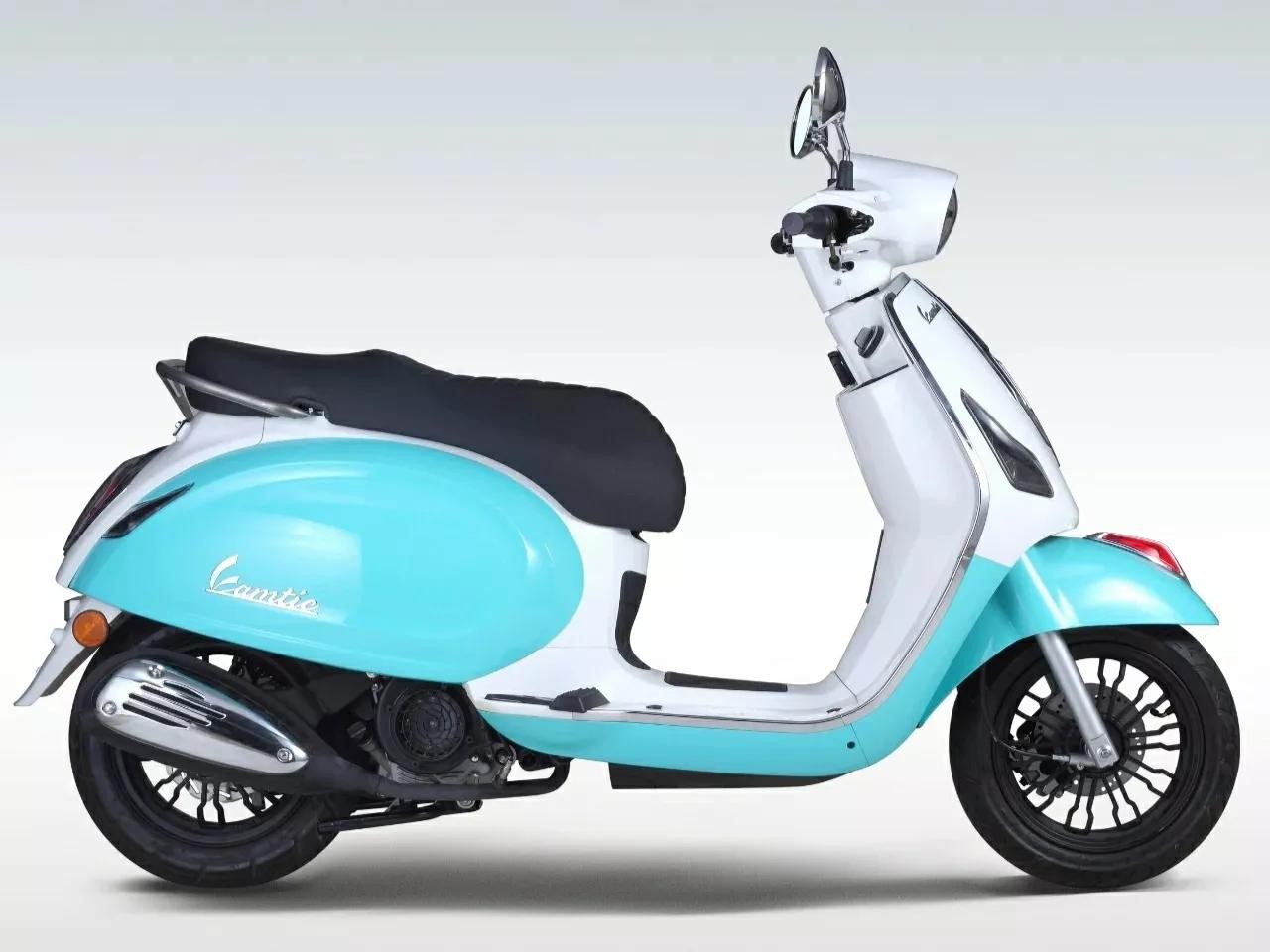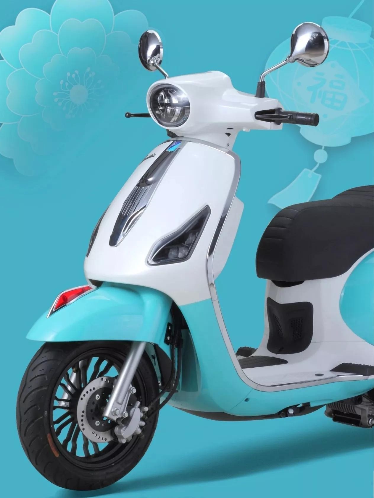 Strong Word运动踏板使用了色彩鲜明的撞色搭配,车身线条变化较为硬朗,并覆盖了仿碳纤维纹路,倒梯形的LED大灯和独立的乘客脚踏都非常个性。而Vamtie复古踏板则是传统的圆润车身,镀铬亮色的装饰条和后视镜,圆形大灯和条纹坐垫,多辐条轮毂和鸡腿排气,都是典型的欧风踏板。