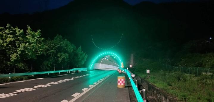大梁山隧道路段北接G25长深高速福岭枢纽,隧道口距离枢纽距离短、坡度大;南接G1513温丽高速石帆收费站,属长下坡路段。对于司机开车来说,需要格外集中注意力。为了保障司机驾驶安全,金丽温公司于2020年初在隧道增设洞口轮廓灯,在隧道洞口轮廓连接布设,形成整体指示灯带,远远看去宛如一道绚丽的“时光隧道”。