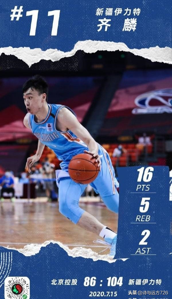齐麟是CBA一年级新生,表现越来越好,最近几场比赛更是接连得分上双,对阵北控得到16分,迄今最高,上轮打山东又有15分进账,比赛中齐麟封盖陶汉林上篮的画面,给人留下了深刻印象。