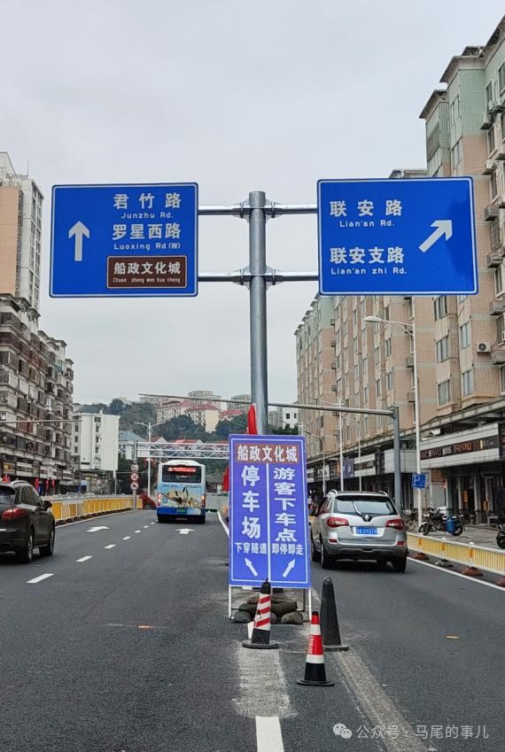 走出停车场就可以看到,景区接驳车停在时空隧道口,据了解,持《最忆船政》或《敦煌艺术瑰宝展》购票凭证可免费搭乘。