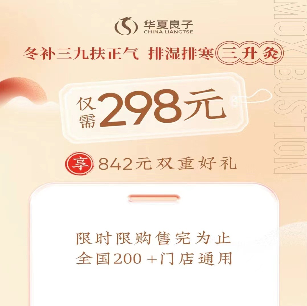 华夏良子不断推出更符合全年龄养生需求和具有季节养生特色的主题活动,如最近推出的三升疚活动,将冬季与三九疚结合,顺应四时,冬补三九,让顾客认识到冬季艾灸好处的同时将三次艾灸单部位的价格打到了298元,在品质不降的情况下,更多的给消费者让步,这种针对季节性养生需求的活动吸引了众多年轻人,让他们更加愿意选择在华夏良子进行养生。