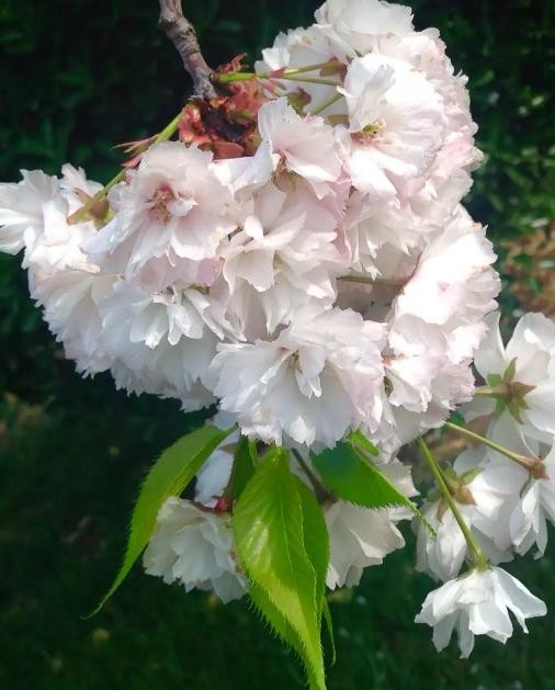 樱花单生枝顶,有单瓣和复瓣两类,呈白色或淡粉色。花每枝3到5朵,呈伞状花序,花有白色、粉红色。3-4月与叶同放。