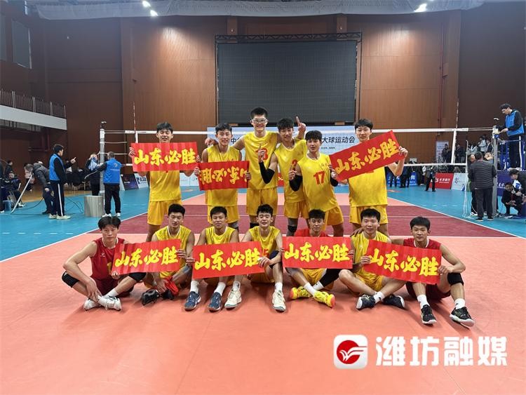11月28日下午,首届全国青少年三大球运动会男排决赛在湖南省岳阳市第十四中学体育馆结束,经过四局激战,山东男排大比分3:1逆转战胜江苏队,夺得冠军。在这支冠军队伍中,姚谦、张智强、王严泽、杨玉泽、张梓恒、宫浩乾和衣福骏7名运动员由潍坊市体育运动学校培养输送。这也是山东代表团本届赛事拿到的第4个冠军,此前,潍坊运动员助力山东队分别夺得了男足和女排项目的冠军。