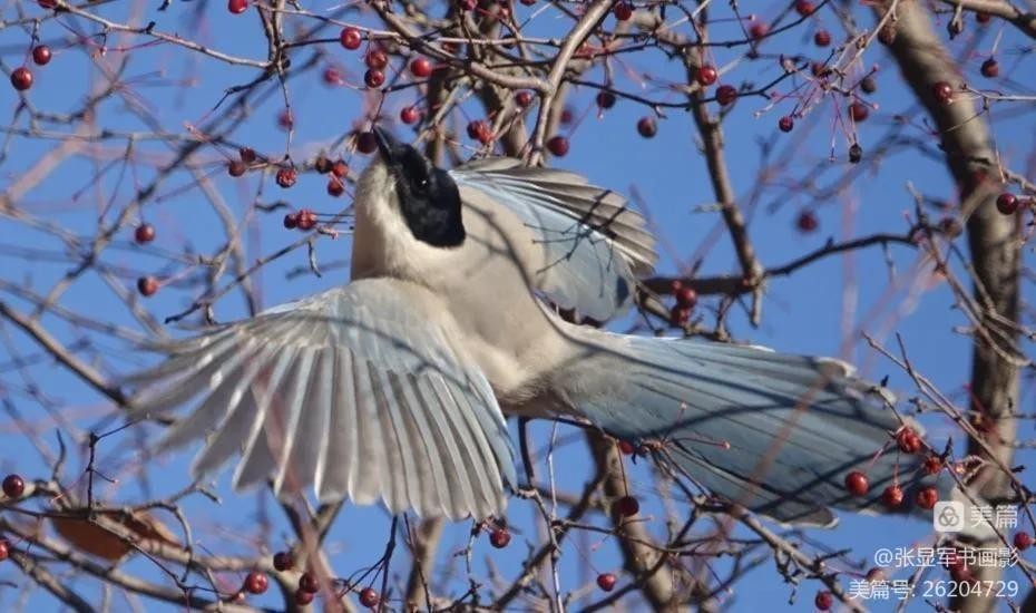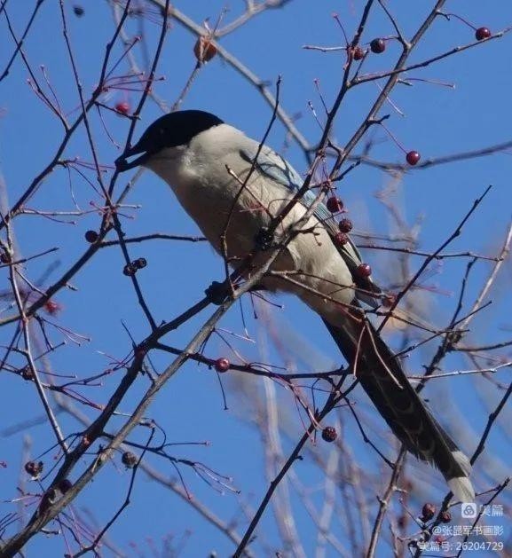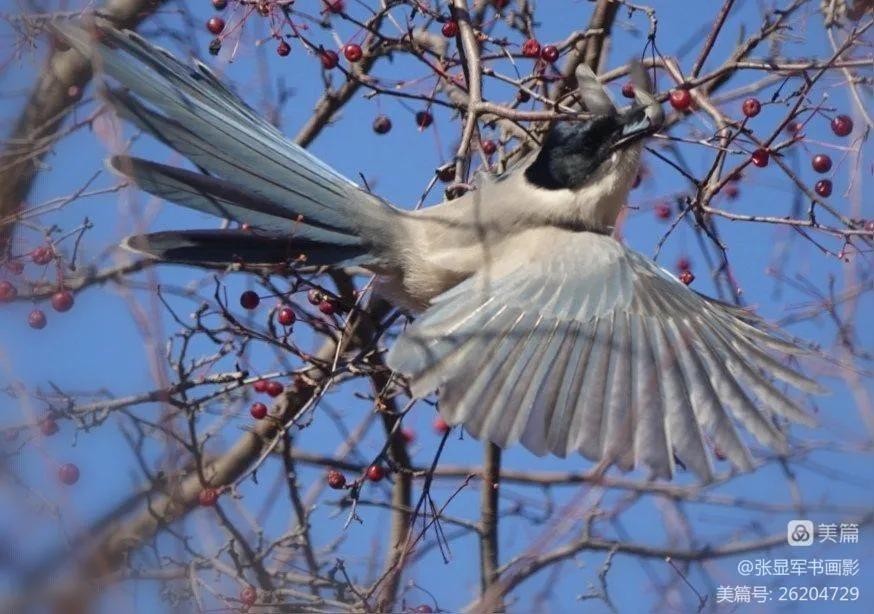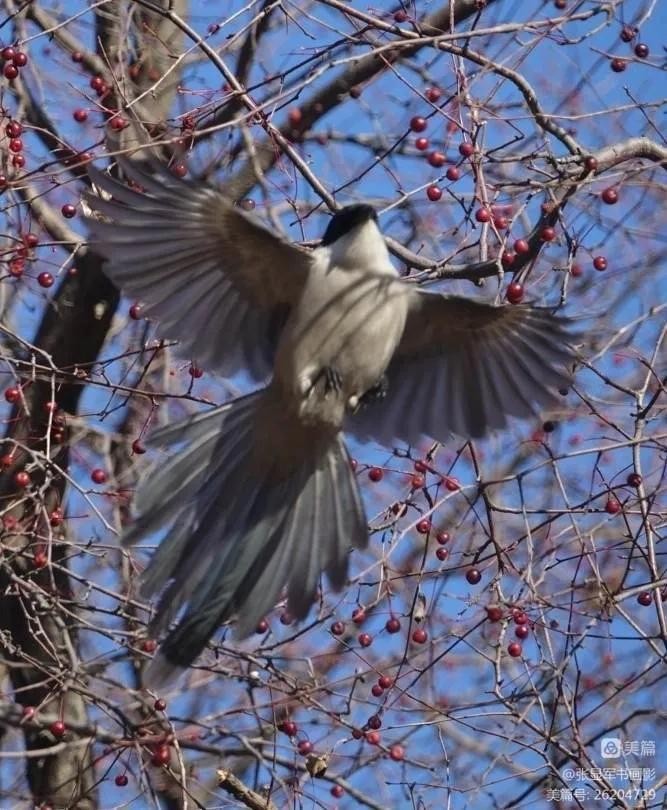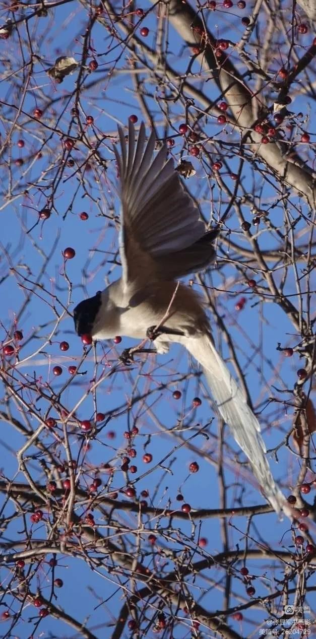 本人昨天在AAAA级风景区二龙山游玩时,拍到了一组灰喜鹊进食时的画面,几十只灰喜鹊在山丁子树“饱歺”山丁子果实,在此将几幅画面分享给网友,请欣赏。