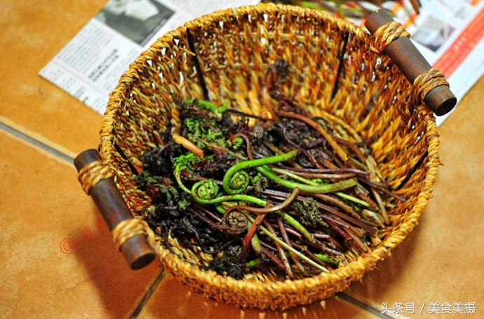 它的学名叫猴腿蹄盖蕨,长白山的一种著名特产,每年春季采摘猴腿卷曲没有伸展开来的嫩叶,可以鲜食也可以做成干菜。猴腿菜的营养丰富,味道鲜美而独特,且营养价值高,享有山野菜之王的美誉。