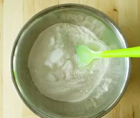 1.奶粉少许。面粉50。加酸奶进去搅拌均匀至无颗粒。