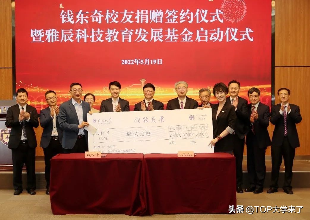 “TOP大学来了”小编按,5月19日,南京大学校友钱东奇捐赠签约仪式暨雅辰科技教育发展基金启动仪式在仙林校区举行。