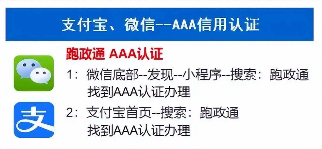 1.支付宝app:支付宝首页搜索“跑政通”小程序,找到“AAA认证”选项,填写表格内容,随时可办理!