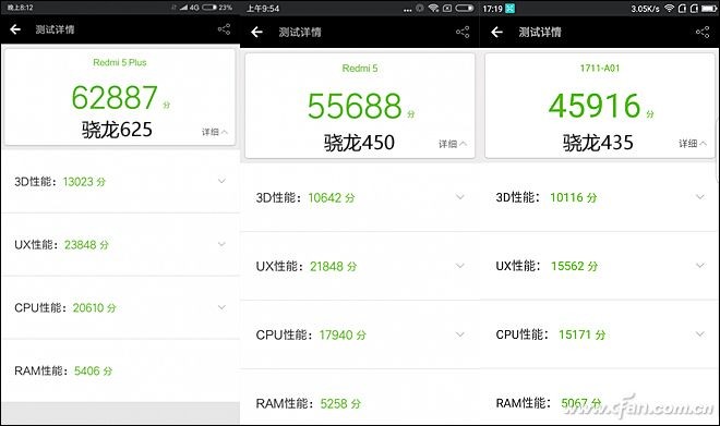 从安兔兔跑分成绩来看,骁龙450虽然距离骁龙625还有一定距离,但却已经可以秒杀骁龙435了,作为千元机(准确来说是低于799元价位)的芯脏而言,这个成绩已经足以令人满意了。