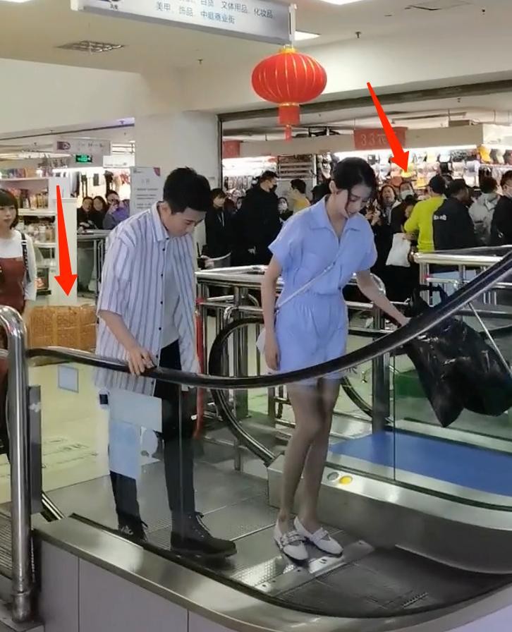 当天商场里还有很多路人,剧组直接将拍戏要用的电梯用栏杆围了起来,旁边还有很多围观的群众挤在一块,排场十足。