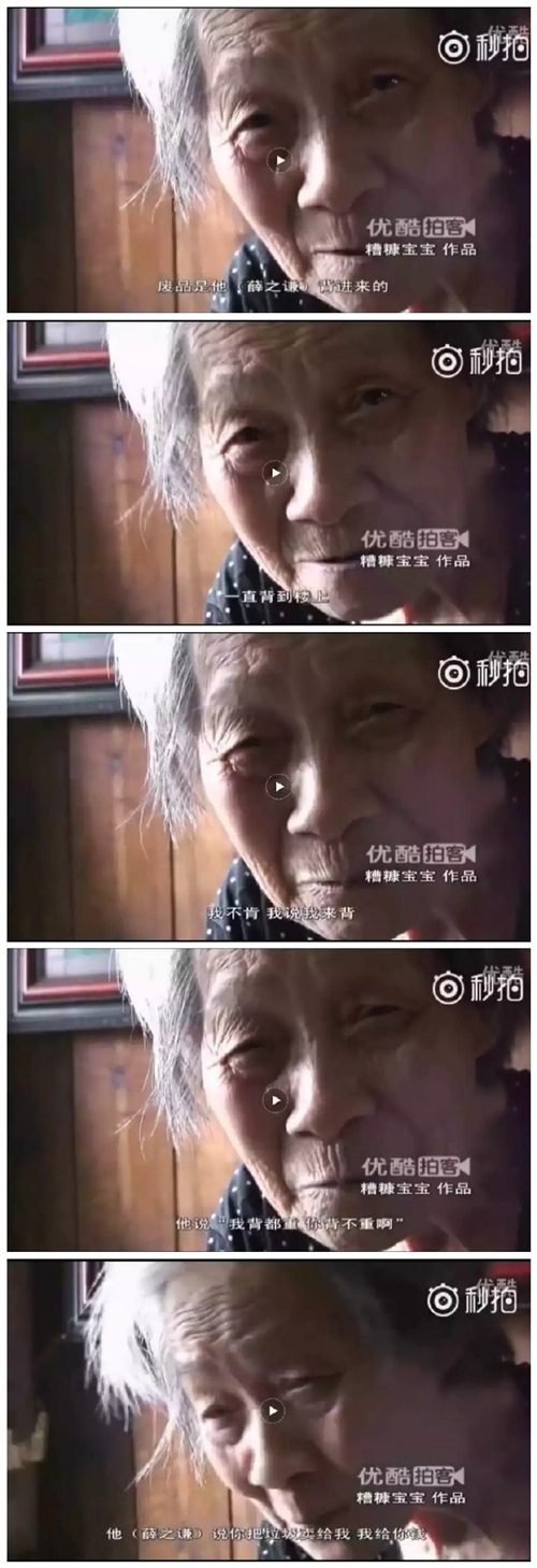 心疼老奶奶的薛之谦提出买下老奶奶的废品,让老奶奶在家休息,但老奶奶却说自己仍能干活,不想接受薛之谦的钱。