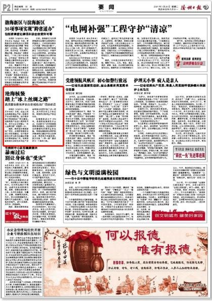 7月20日,沧州日报刊发文章《沧海核装 踏上“冰上丝绸之路”——高质量保供俄罗斯共青城炼油厂项目建设》。