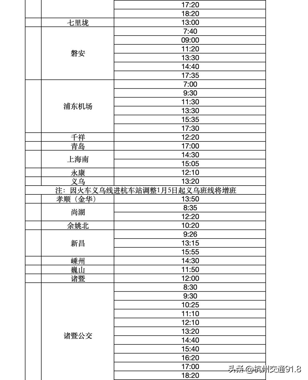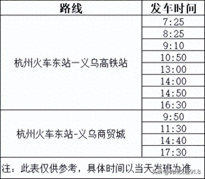 为方便旅客出行,1月5日起,杭州长运火车东站公路汽车站义乌班线将增加班次,杭州火车东站-义乌商贸城每日4班车,火东-义乌高铁站每日8班车。
