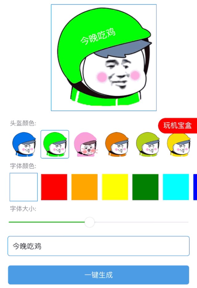 选择你喜欢的头盔颜色,输入头盔上的文字,并调整字体颜色和大小,调节到合适的大小,最后一键生成即可。