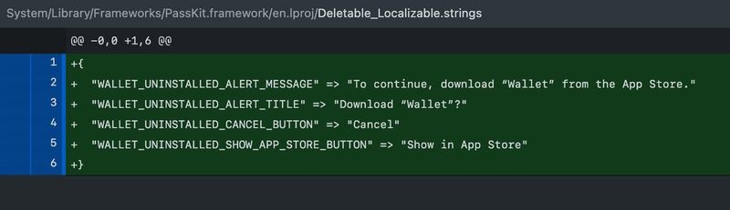 该代码表明,如果钱包应用程序已从 iPhone 中删除,并且 iPhone 用户尝试使用 Apple Pay 等功能,则可以从 App Store 下载该应用程序。