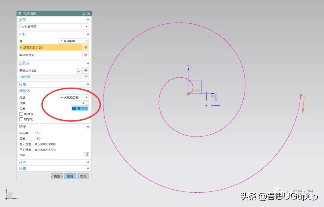 如果觉得一个一个点选得太慢的话,可以用拟合曲线,全部框选上所有的点就好了,注意方法选次数和公差哦。