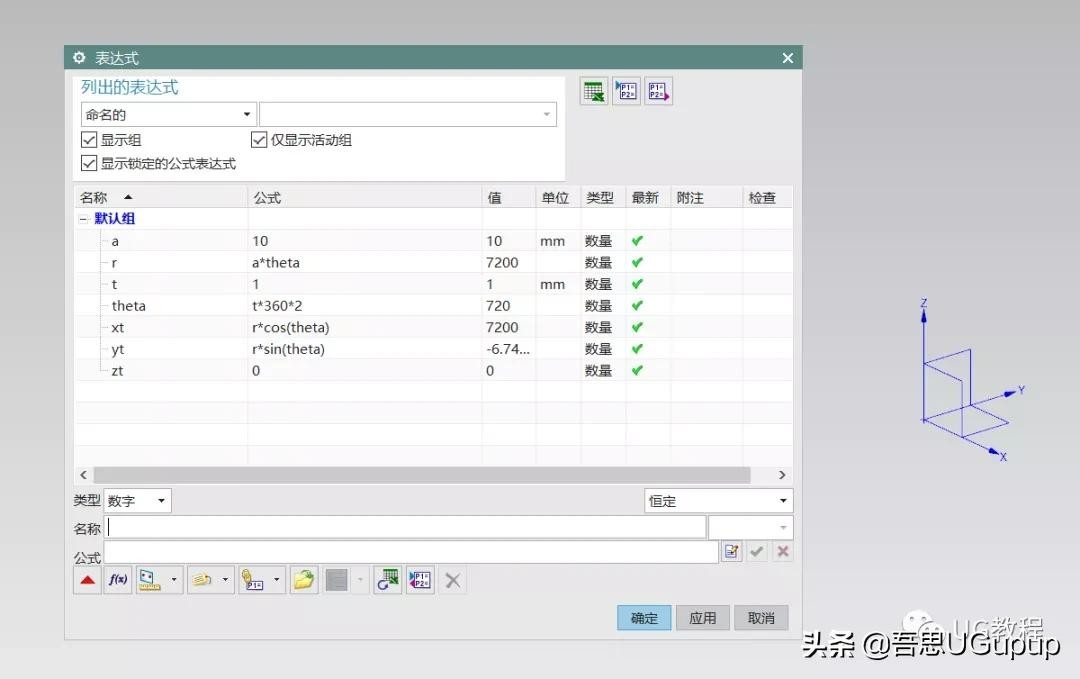 方法2,利用函数表达式来生成,这里我们按CTRL+E打开UG表达式编辑器,输入以下函数