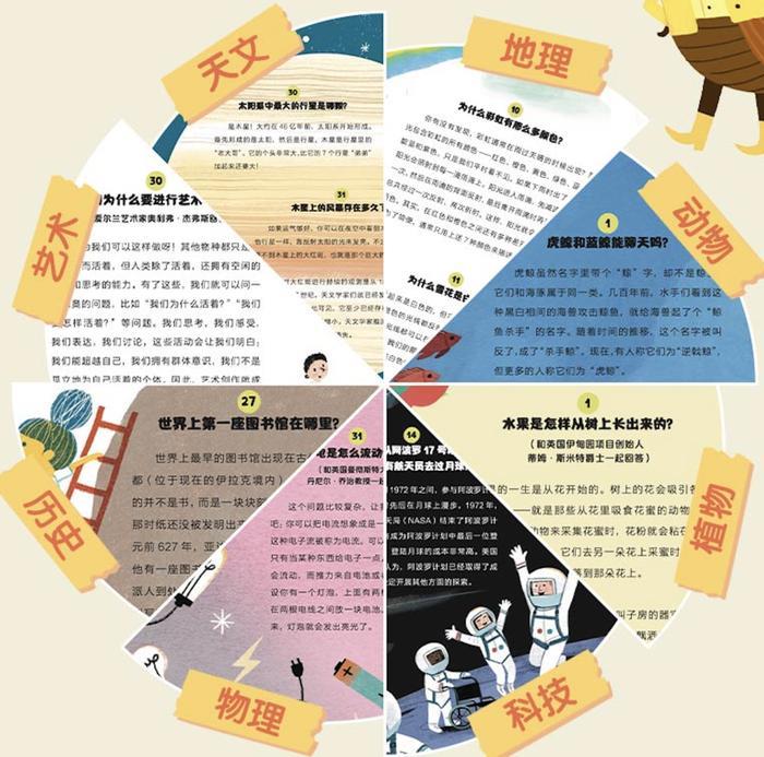 全书横跨天文、地理、动物、植物、科技、物理、历史、艺术等8大知识领域。