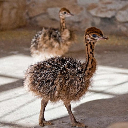 2小鸵鸟饲养,饲养小鸵鸟比较关键,特别是出壳前几天是最重要的,出壳最初1-2天不需要喂食,2天后小鸟会经常主动饮食和饮用水,饮食后最初3天仔细检查小鸟,发现腹泻应立即治疗。至于小鸵鸟的饲料可以用鸡饲料来代替,每天可以喂4-5次,还可以喂一些白菜碎、萝卜碎等等。饮用水没有什么特别要求,干净就可以了,水里可以加一些预防疾病的药。