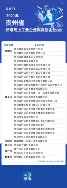 4月11日,贵州省工业和信息化厅对2021年新增规模以上工业企业拟奖励企业名单进行公示,其中共有来自贵阳、遵义、安顺、毕节、铜仁、黔南州等地的28家酒企获得奖励,详细名单如下所示。