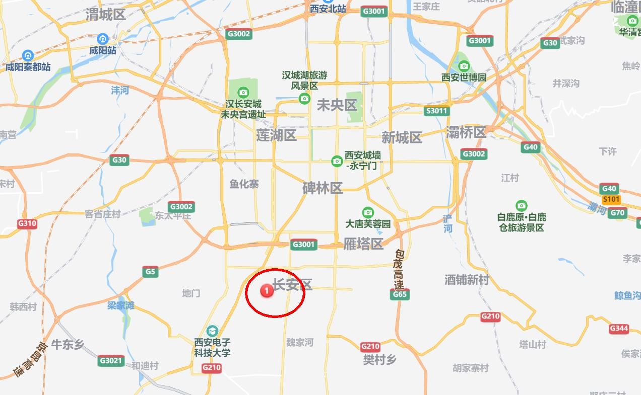西安市除霾塔附近的卫星地图如下所示。