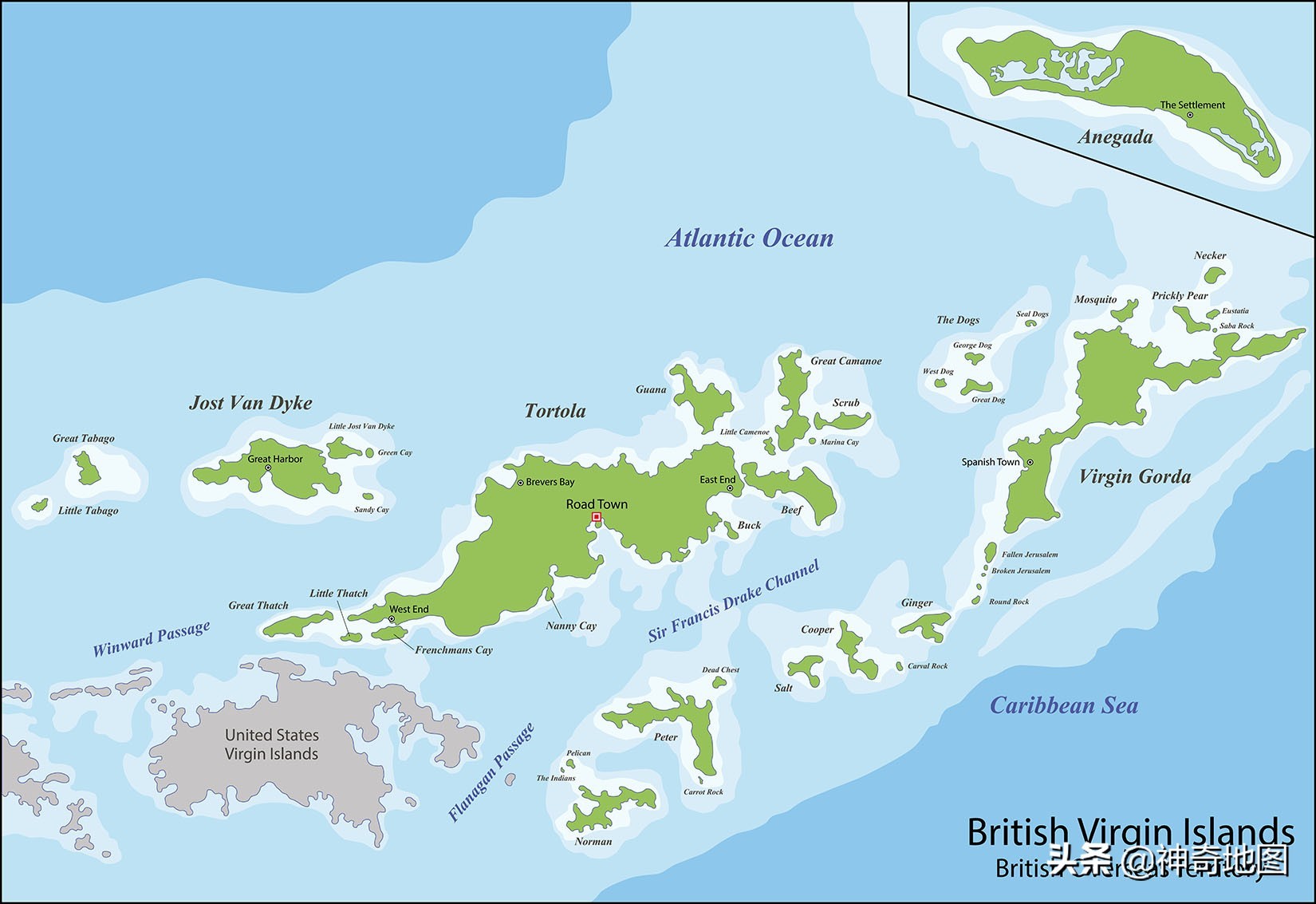 整个维尔京群岛的历史,我在美属维尔京群岛那期写过,这里不再重复。与美属维尔京群岛那些岛名中的宗教色彩不同,英属维尔京群岛的名字带着浓浓的荷兰味儿。也不奇怪,因为这几个岛是1672年(清康熙十一年)后,英国人从荷兰人手中抢过来的。