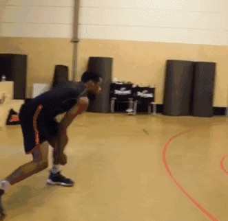 五、炸球撤步投篮:与上面类似,区别只是我们这回是炸球+撤步投篮了,这个动作不管是库里还是詹姆斯都有用过,对于今后我们后撤步跳投有极大帮助。