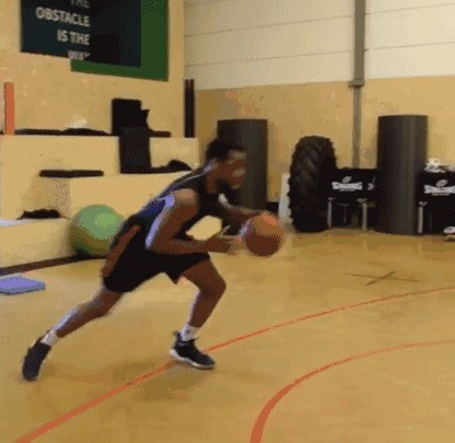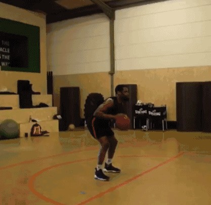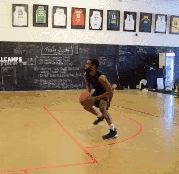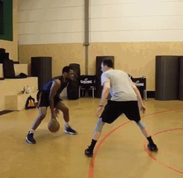 六、胯下背后撤步投篮:胯下运球+背后撤步的组合十分好用,也是锻炼投篮稳定性的好动作,库里和欧文的常用动作。