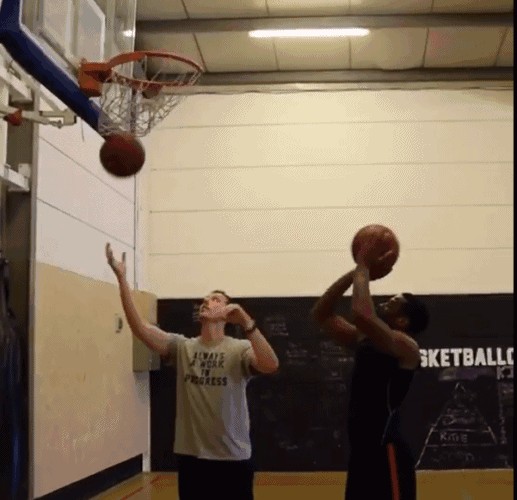 一、篮下连续投篮:简单基础的小练习,站在篮下不断投篮,力求每一个投篮都空心命中,熟悉后可以慢慢拉开距离,这练习能让我们形成稳定的肌肉记忆。
