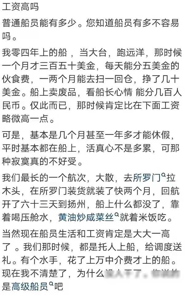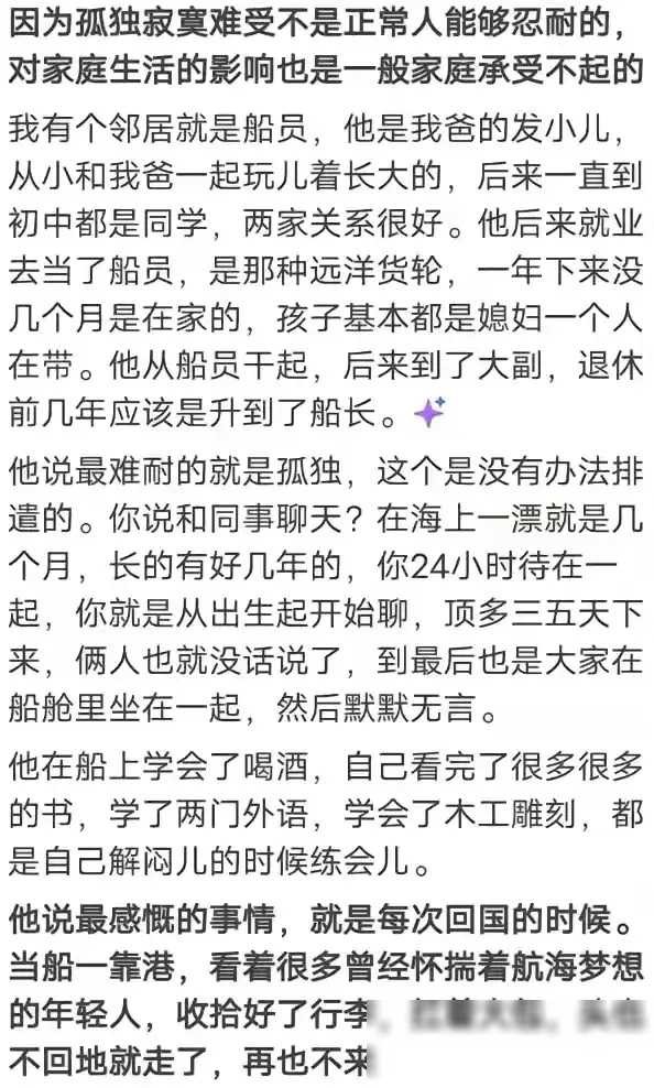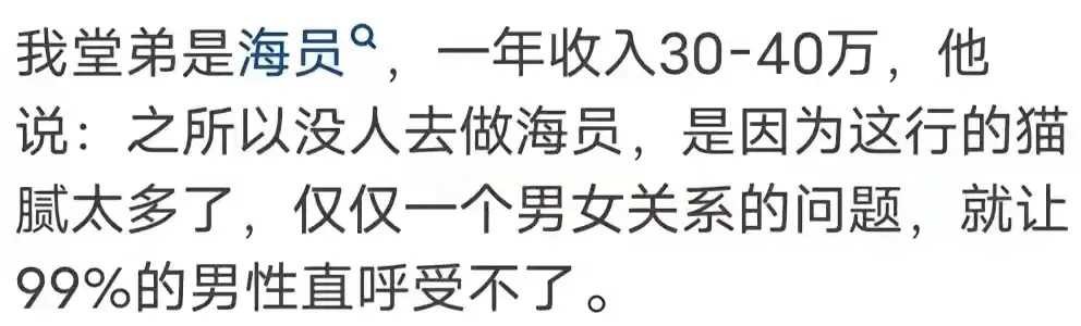 船员工资很高,为什么却没人愿意做?网友:男女关系最让人受不了