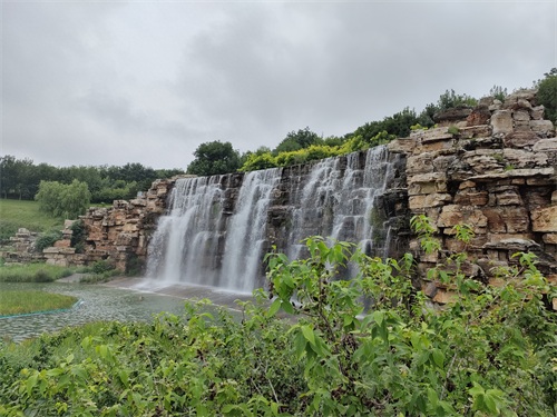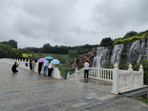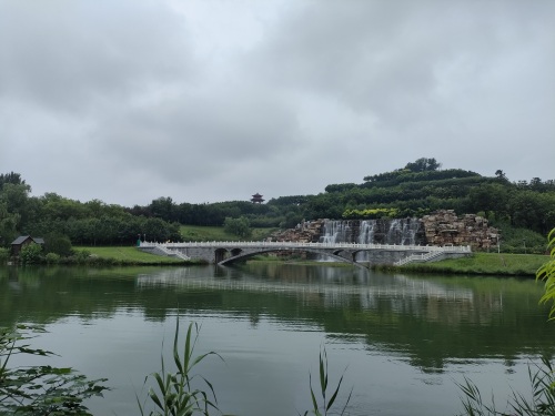从园博园东门进入后映入眼前的就是这一个人造瀑布了,在小雨中还是挺好看的。