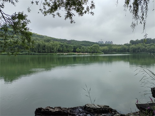 走到湖水西侧后的雨中美景,感觉不像是北方的风景