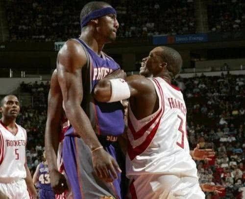 同届的9号秀斯塔克迈尔更是如此,04年在一场太阳和火箭的常规比赛中,斯塔克迈尔顶开姚明后,在大姚头上完成了一次暴扣。本来这也就是一次普通的进攻,可扣篮得手后,小斯却不依不饶的对着姚明大吼大叫,放声挑衅,正所谓叔可忍嫂不能忍,虽然当事人姚明没有表态,可一边的球队老大弗朗西斯却看不下去。竟然敢欺负我的人,弗朗西斯上前一肘将斯塔克迈尔推开,并大喷垃圾话,为刚进联盟没多久的姚明找回面子,