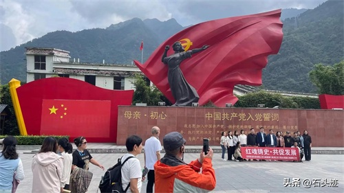 好在人们已经从阴霾中走出来了。党旗下新党员在宣誓。周边的商贩叫卖声此起彼伏。这里已经成为了旅游景点。旁边传来接打电话的声音:“你在哪点儿啊?”“我在漩口中学耍。”