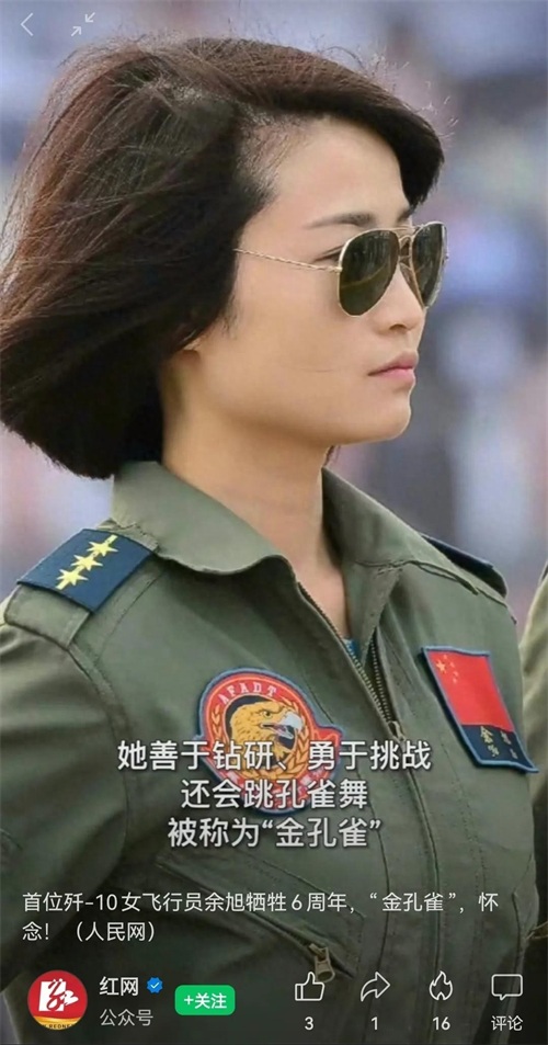 首位歼十飞行员,余旭牺牲6周年纪念日,牺牲时正值30岁。她曾被赞誉为蓝天中的“金孔雀。”