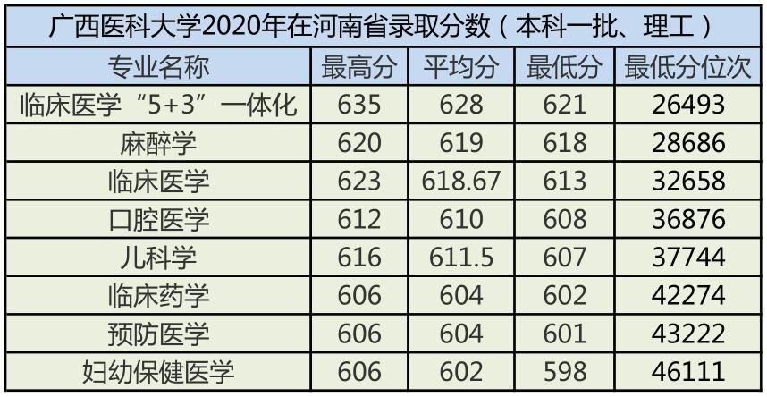 广西医科大学2020年录取分数出来了!