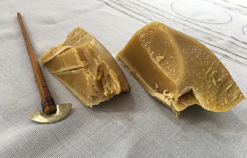 准备材料:染料 ,铜刀(有不同规格的铜刀,一般有半圆形、三角形、斧形)白色布料,蜂蜡,手套