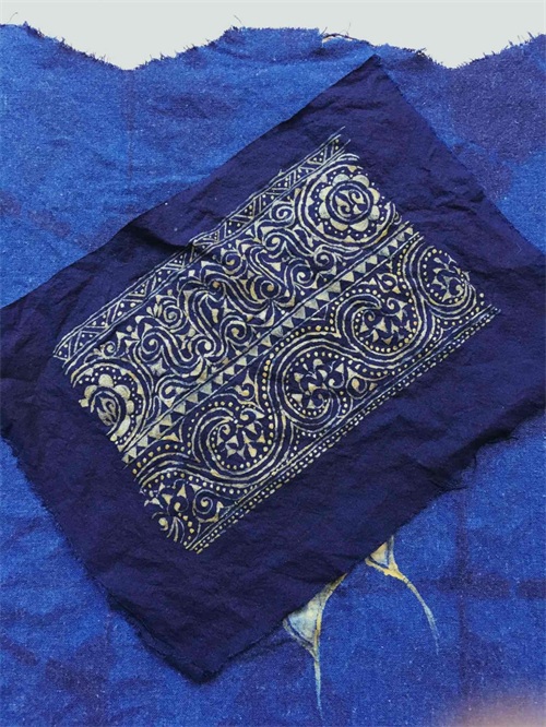 蜡染是我国古老的少数民族民间传统纺织印染手工艺,与扎染,镂空印花并称古代三大印花技艺。蜡染是用蜡刀蘸熔蜡绘花于布后以燃料浸染,染好去除蜡,布面就呈现出蓝底白花或白底蓝花的多种图案,同时,在浸染中,作为防染剂的蜡自然龟裂,使布面呈现特殊的裂纹。蜡染图案丰富,色调素雅,风格独特,经常用于服饰设计中,富有民族特色。今天简单教大家认识一下蜡染工艺