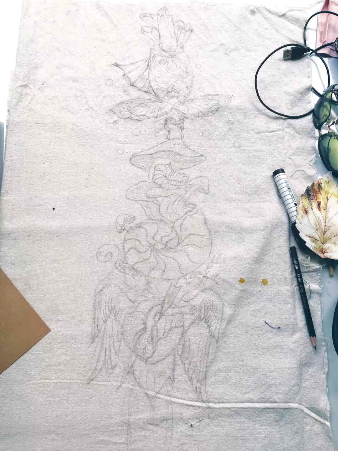 2.如果要画的图案很复杂,可以提前在布上用笔画出图案