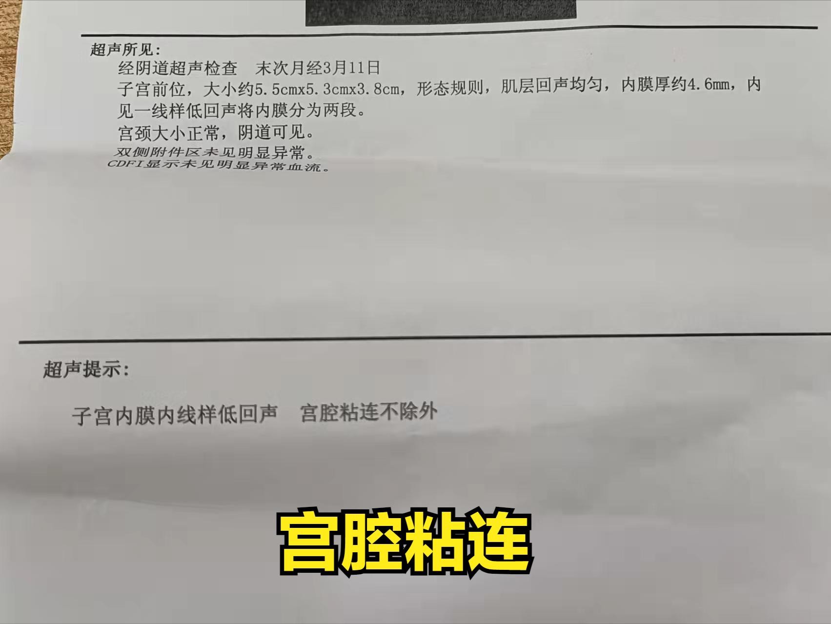上图是外省做的人流2年了,月经很正常,现在想怀孕,怀不上,一查超声宫腔粘连。还要住院做宫腔镜下分离粘连,术后大量雌孕激素。不仅身体上、经济上、时间上、心理上都增加压力。后面怀孕还是未知数。