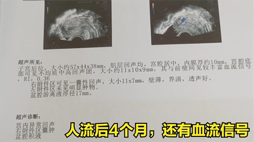 好多为了“省时省事”,尤其是现在有了无痛麻醉以后,拿无痛人流当了避孕方法,孰不知人流的近远期并发症会拖延很久。瞧下面的图片。图一是一家大医院一个大大夫的给做的人流手术,术后复查2月复查超声有强回声,还有血流信号,给予米非司酮二周,人流后4个月来过几次月经了还是有强回声和血流信号。这不能说明大夫技术不好,因为每个人子宫长的不一样。因为这个大夫我知道她在业内小有名气,下一步,这患者还要宫腔镜下刮一下。