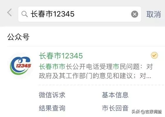 1. 登录微信,查找公众号“长春市12345”,点击“关注”完成即可;