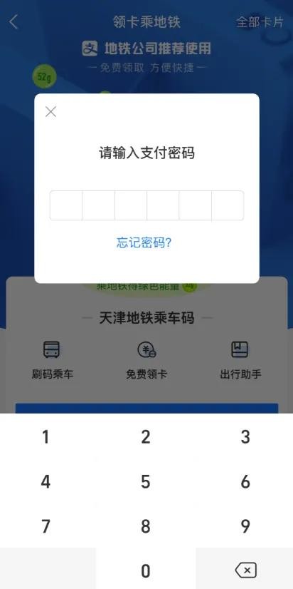 输入支付密码领取卡片