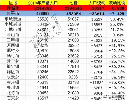 晋城高平市2020年人口普查分乡镇数据及解析