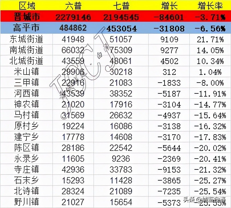 晋城市七普数据发布后