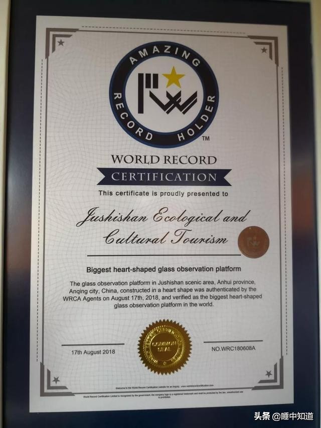 2018年8月17日在现场测量和监督下,世界纪录认证官现场宣布:巨石山520玻璃观景台为世界最大心形玻璃观景台,并向景区授予世界纪录证书。