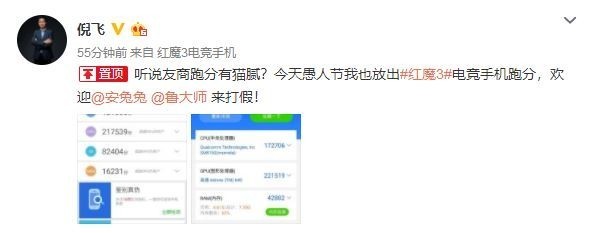 倪飞在微博上放出两张手机跑分截图(安兔兔跑分超43万,鲁大师跑分超47万),并表示:听说友商跑分有猫腻?今天愚人节我也放出红魔3电竞手机跑分,欢迎安兔兔、鲁大师来打假。尽管昨天愚人节的气氛多少会让人生疑,但倪飞“欢迎打假”的气魄依旧令人信服。有网友表示,骁龙855加持的红魔3电竞手机,理论上安兔兔跑分成绩在36万分上下,不知道这款手机有什么黑科技?