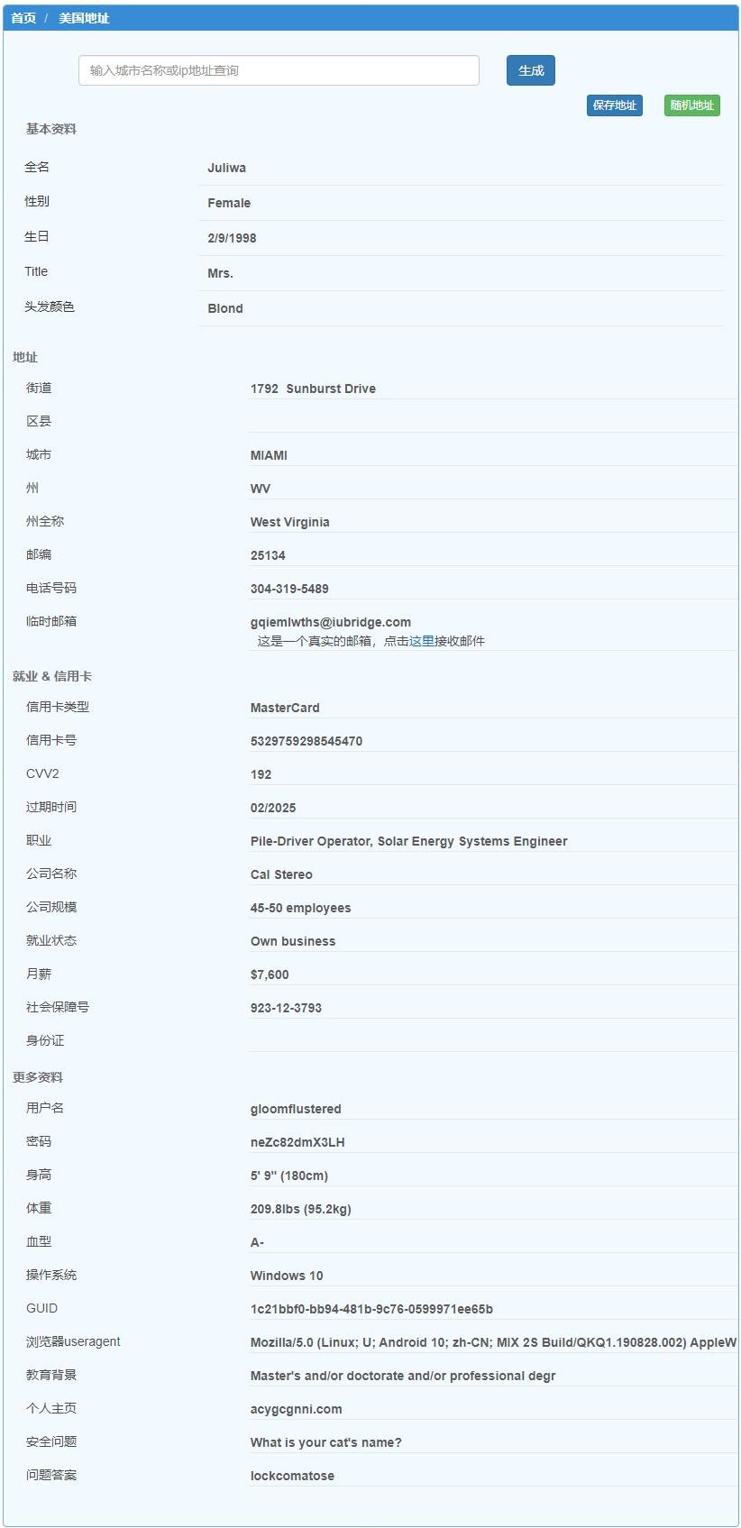 7、百度搜索“美国地址生成”完善必填地址信息验证,完成信息验证后,就免费拥有一个美区的Apple id了;