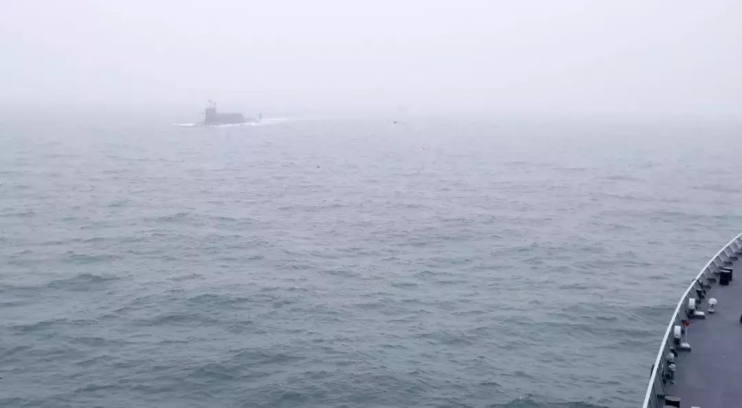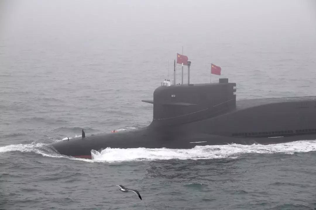 这是中国某新型核潜艇接受检阅。